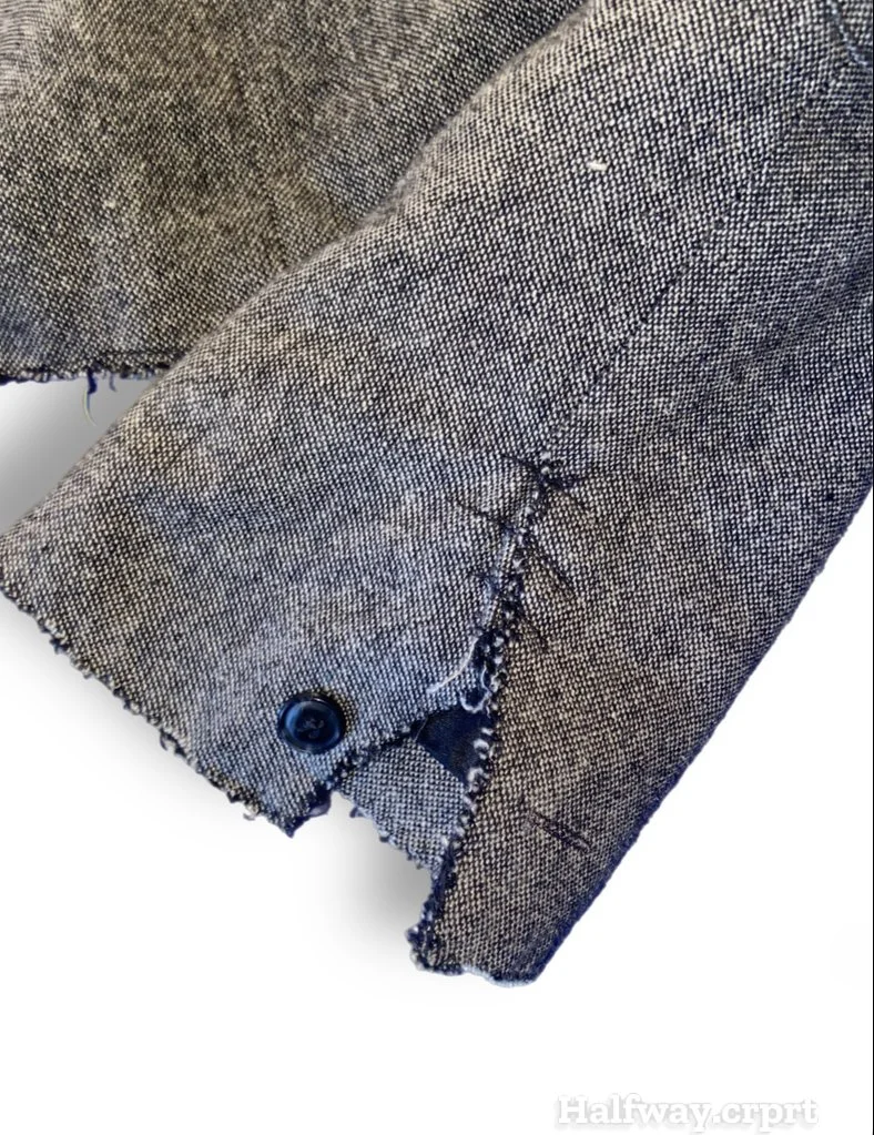 Upscale, Chanel inspired jacket with pearl and pointed metal stud in embellishment with missing rhinestone embellishments for war and tour in addition to distressing and raw edge
